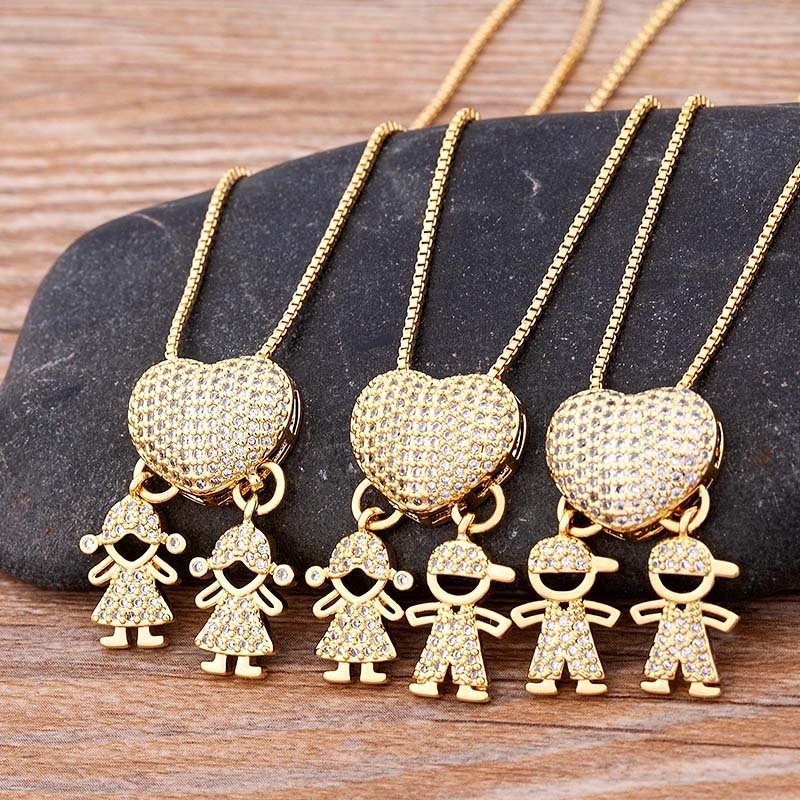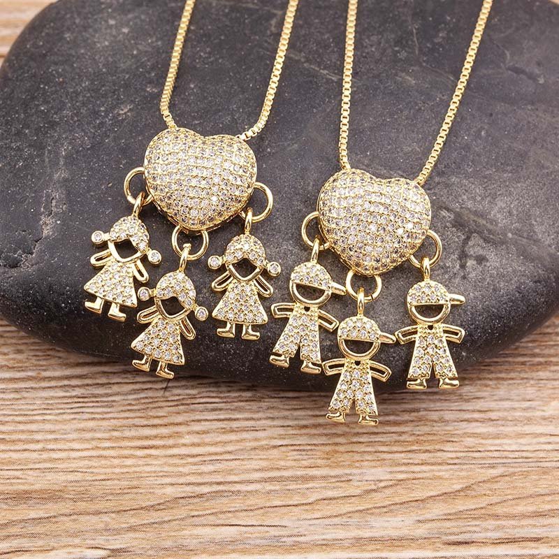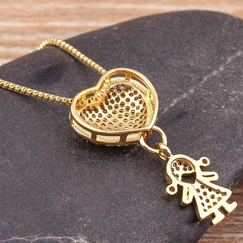 Elegant Design: Features a charming heart-shaped pendant with boy and girl figures, symbolizing love and family.